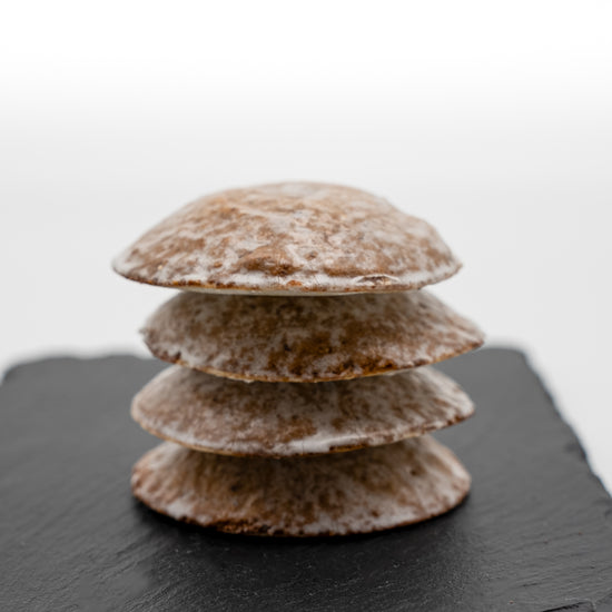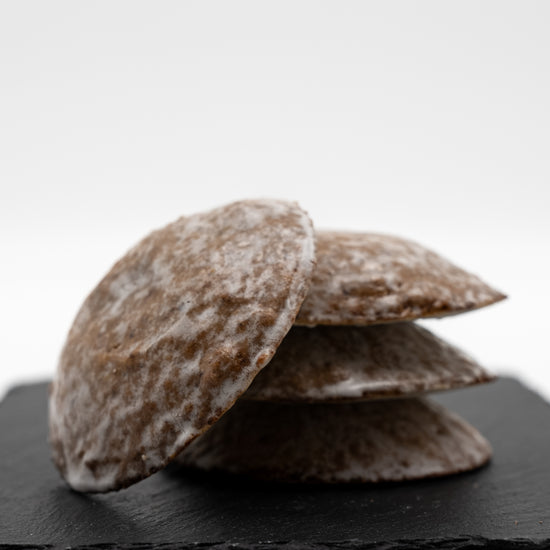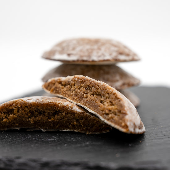 Unsere Elisenlebkuchen werden traditionell von Hand aufgestrichen und einzeln gebacken. Vier saftige Lebkuchen werden nach dem Backen mit einer feinen Zuckerschicht überzogen, die beim Anbeißen einen zarten Knack verleiht. Marzipanrohmasse, Honig und ausgewählte Gewürze sorgen für ein harmonisches, vollmundiges Aroma.