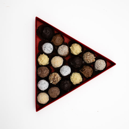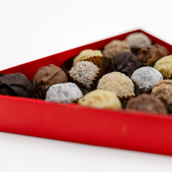 Unsere handgefertigten Pralinen vereinen feine Schokoladenhüllen mit edlen, flüssigen Füllungen. Zarte Hohlkugeln aus Vollmilch-, Zartbitter- oder weißer Schokolade umschließen aromatische Spirituosen wie Rum, Marc de Champagne, Cointreau oder fruchtige Varianten. Jede Praline wird von Hand gefüllt und vollendet.