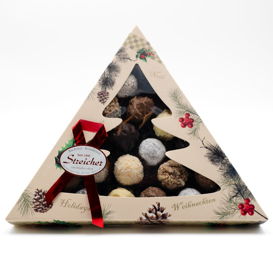 Wir versenden ausschließlich frisch hergestellte Produkte. Stollen und Baumkuchenspitzen werden am Backtag verschickt, Lebkuchen und Pralinen kommen ebenfalls frisch aus unserer Produktion.