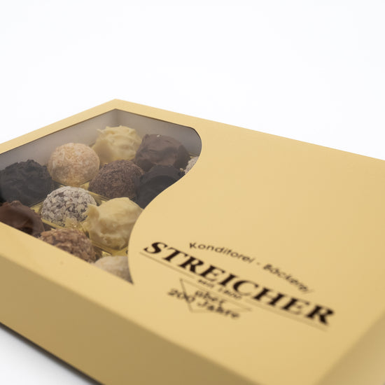 Eine großzügige Auswahl unserer handgefüllten Pralinen, ideal zum Verschenken, Teilen oder für alle, die Pralinen besonders schätzen.