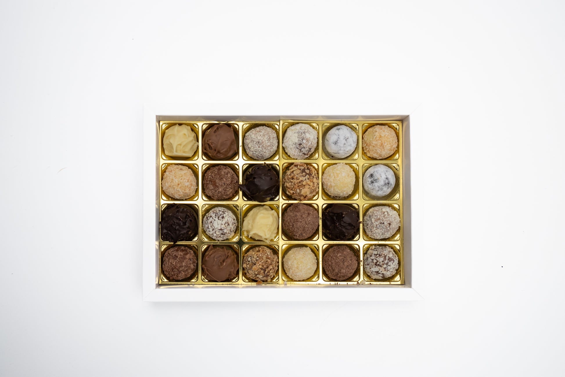 Unsere 24er-Pralinenschachtel vereint handwerkliche Qualität und genussvolle Vielfalt.